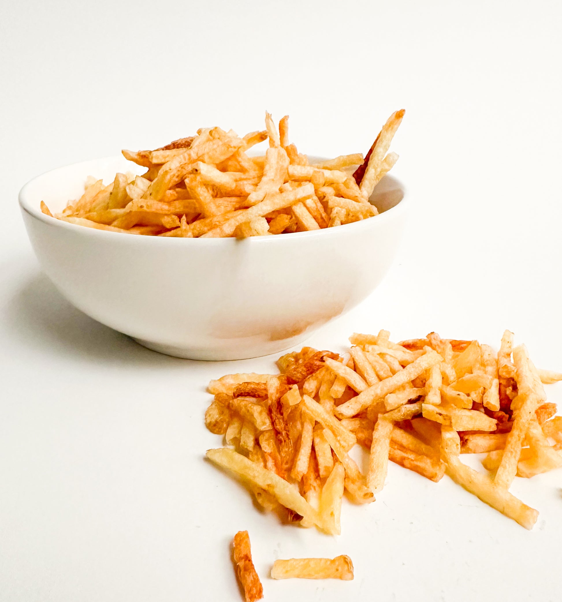 Papitas en forma de bastoncillos horneadas y aderezadas con aceite de oliva, sal y limón.